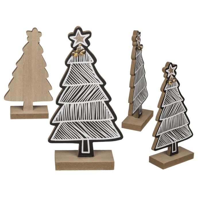 AHŞAP SÜS AĞAÇ - WHITE/BLACK COLORED WOODEN TREE (19,5 cm.)