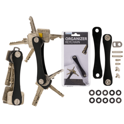 Pek çok anahtarı olanlar için ideal bir düzenleyici Bir sürü anahtarlık aramak, anahtarları karıştırmaya son! 8 adete kadar anahtarı kolayca, bir bozuk para yardımı ile açarak, düzenleyiciye yerleştirin, sonrasında da sabitleyerek ürünü kolayca kullanmaya başlayın. Pratik, ergonomik ve şık! İçindekiler: * Gövde * 2 x 2 vida (takılacak anahtar sayısına göre 2 farklı boy) * Başka anahtarlıklara monte etmek için halka * 2 adet sabitleyici * 10 adet anahtar arası somun Boyut: 9 cm.